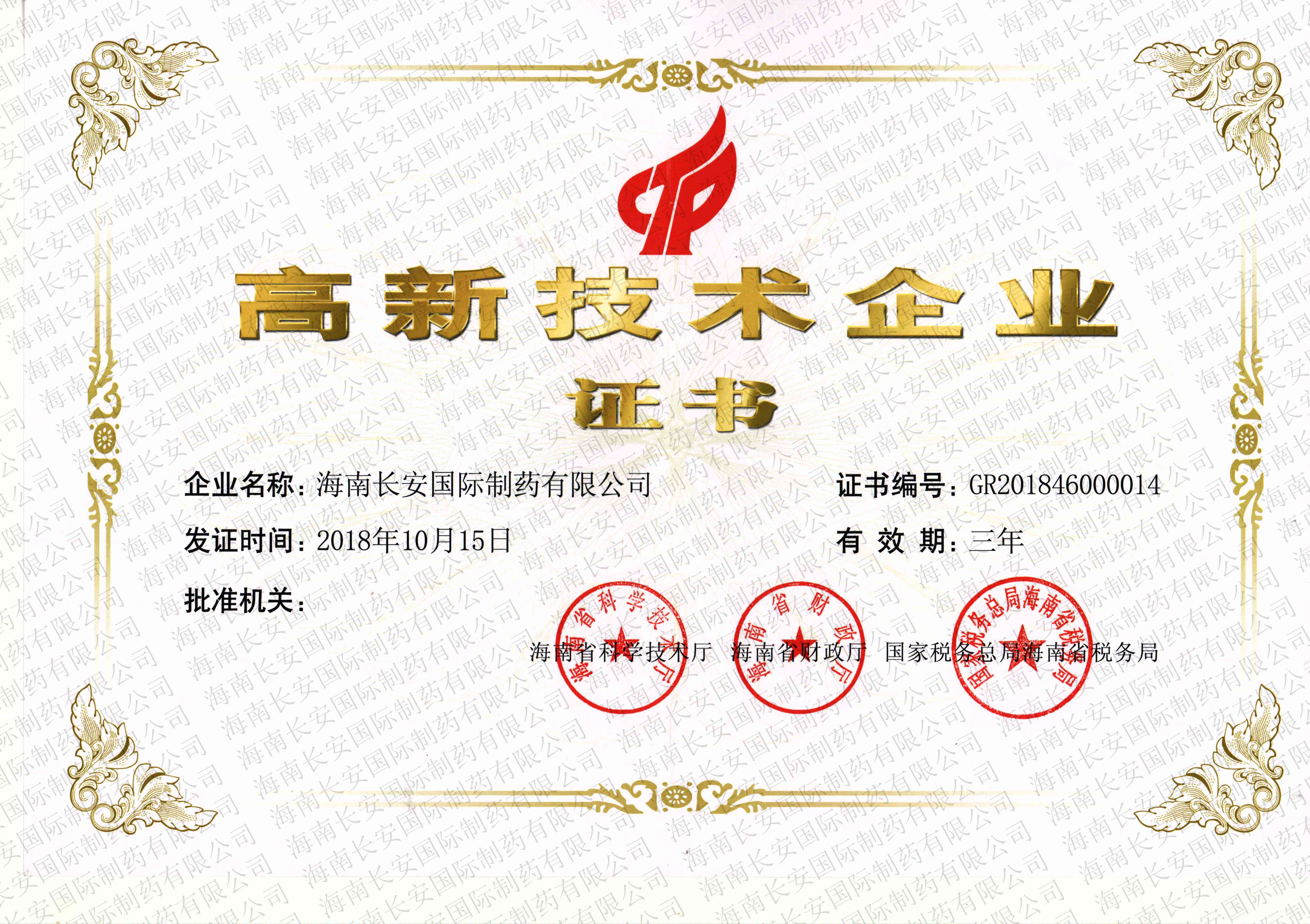 高新技術企業證書