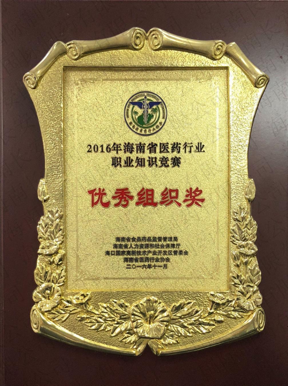 2016年海南省醫藥行業職業知識競賽-優秀組織獎