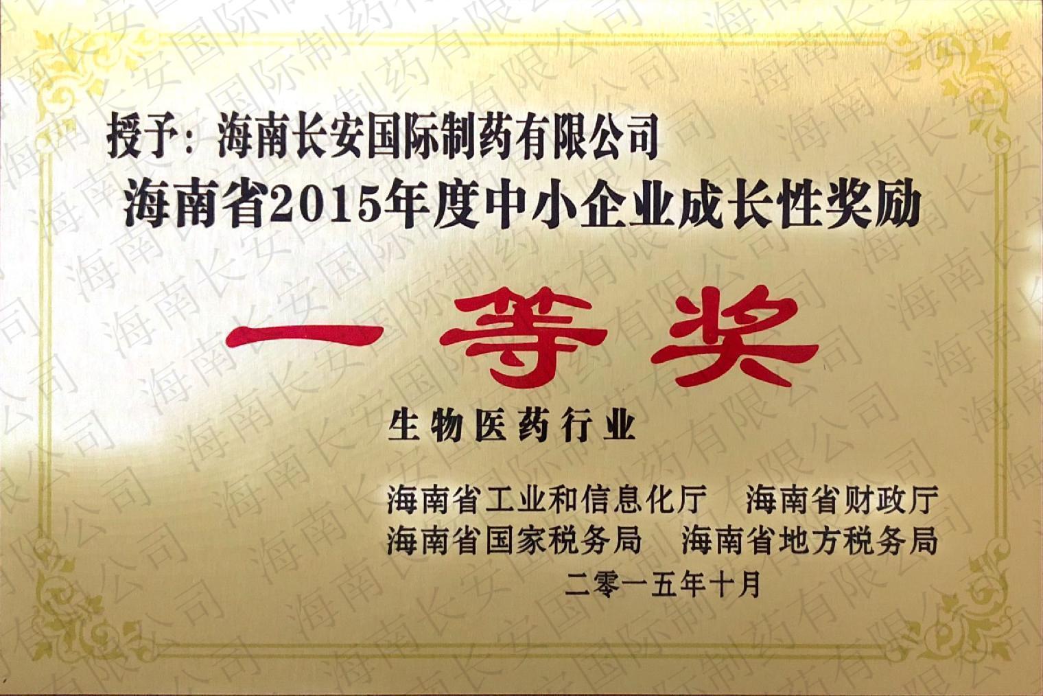 海南省2015年度中小企業成長性獎勵(生物醫藥行業)-一等獎