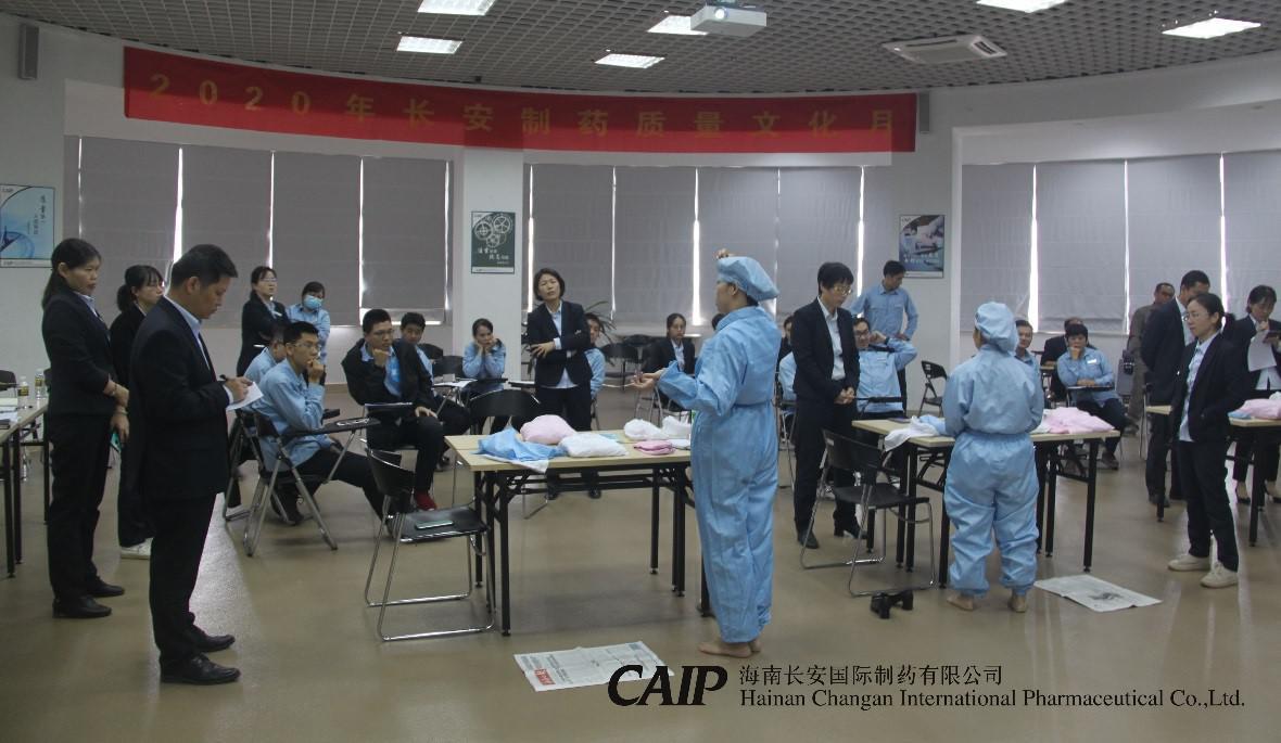 為了強化公司管理,保證藥品質(zhì)量,規(guī)范人員進(jìn)入潔凈區(qū)的操作程序,2020年12月10日(周四)上午,在長安制藥6樓會議室開展了2020年長安制藥質(zhì)量文化月系列活動——生產(chǎn)SOP實操比拼。